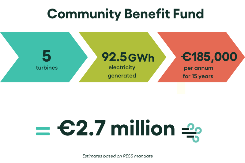 The scheme mandates all RESS projects to establish a Community Benefit Fund worth €2/MWh (megawatt hour) of generated electricity for the RESS contract period. FuturEnergy Ireland also offers a further €1/MWh for the remaining lifetime of the project. The total fund depends on the final power output.